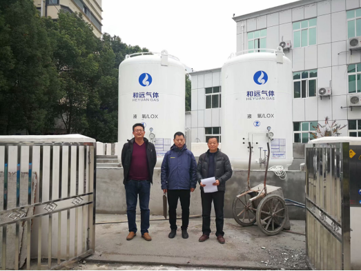 該醫(yī)院用氧由湖北和遠氣體股份有限公司生產(chǎn)提供,并為其生產(chǎn)線配套建設(shè)了一座氧氣氣化站,其規(guī)模為5m³液氧儲罐兩個,并配備相應(yīng)的氣化裝置。湖北和遠氣體股份有限公司是一家主要從事各種工業(yè)氣體的生產(chǎn)及銷售的民營企業(yè)。公司成立于2003年,是湖北省氣體生產(chǎn)、供應(yīng)、綜合應(yīng)用專業(yè)氣體廠家之一。液氧由湖北和遠氣體股份有限公司通過液體罐車運到該醫(yī)院,再灌裝到液氧儲罐,經(jīng)氣化后供該醫(yī)院使用。